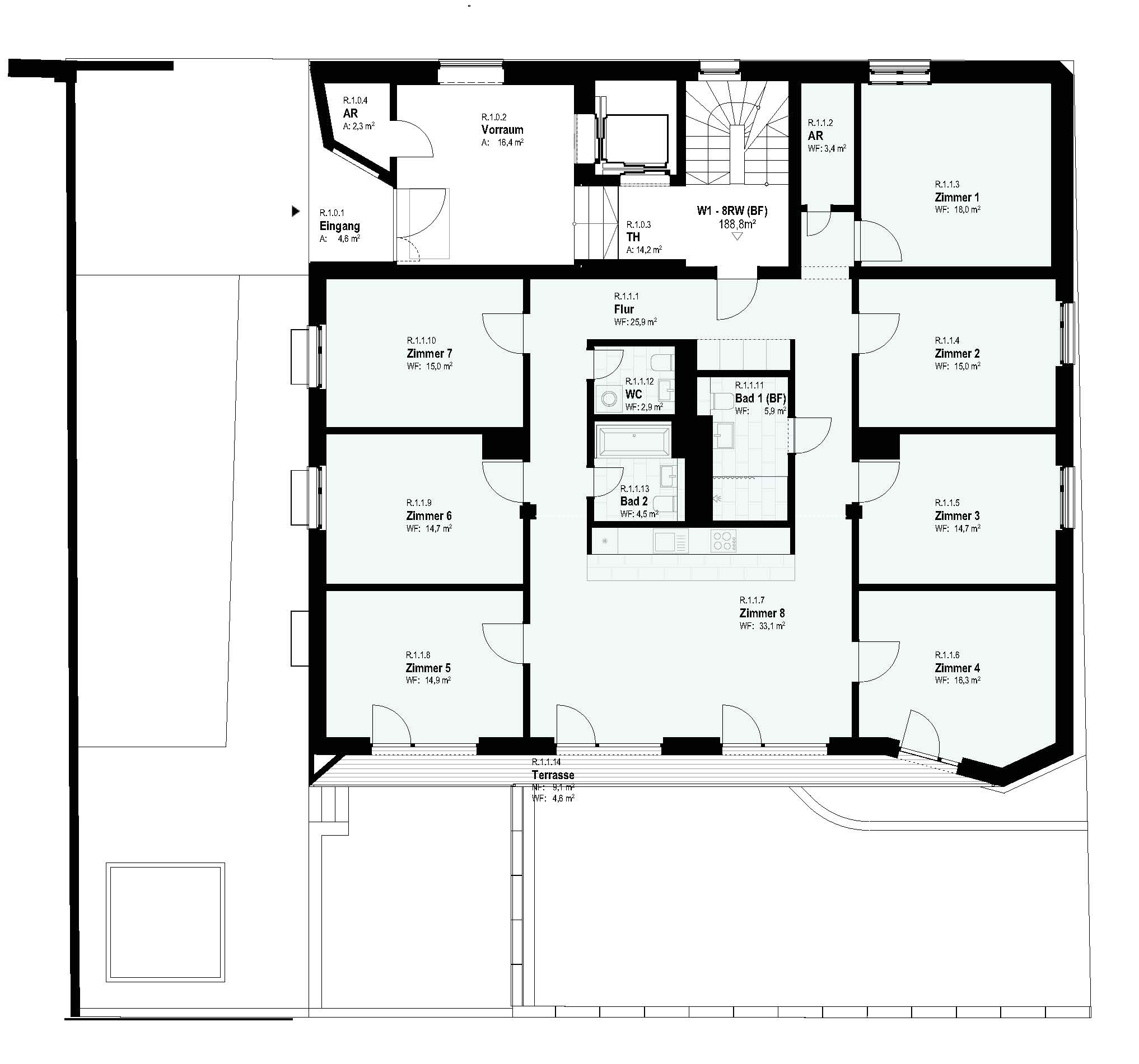 Erdgeschoß: Nutzung als WG-Wohnung